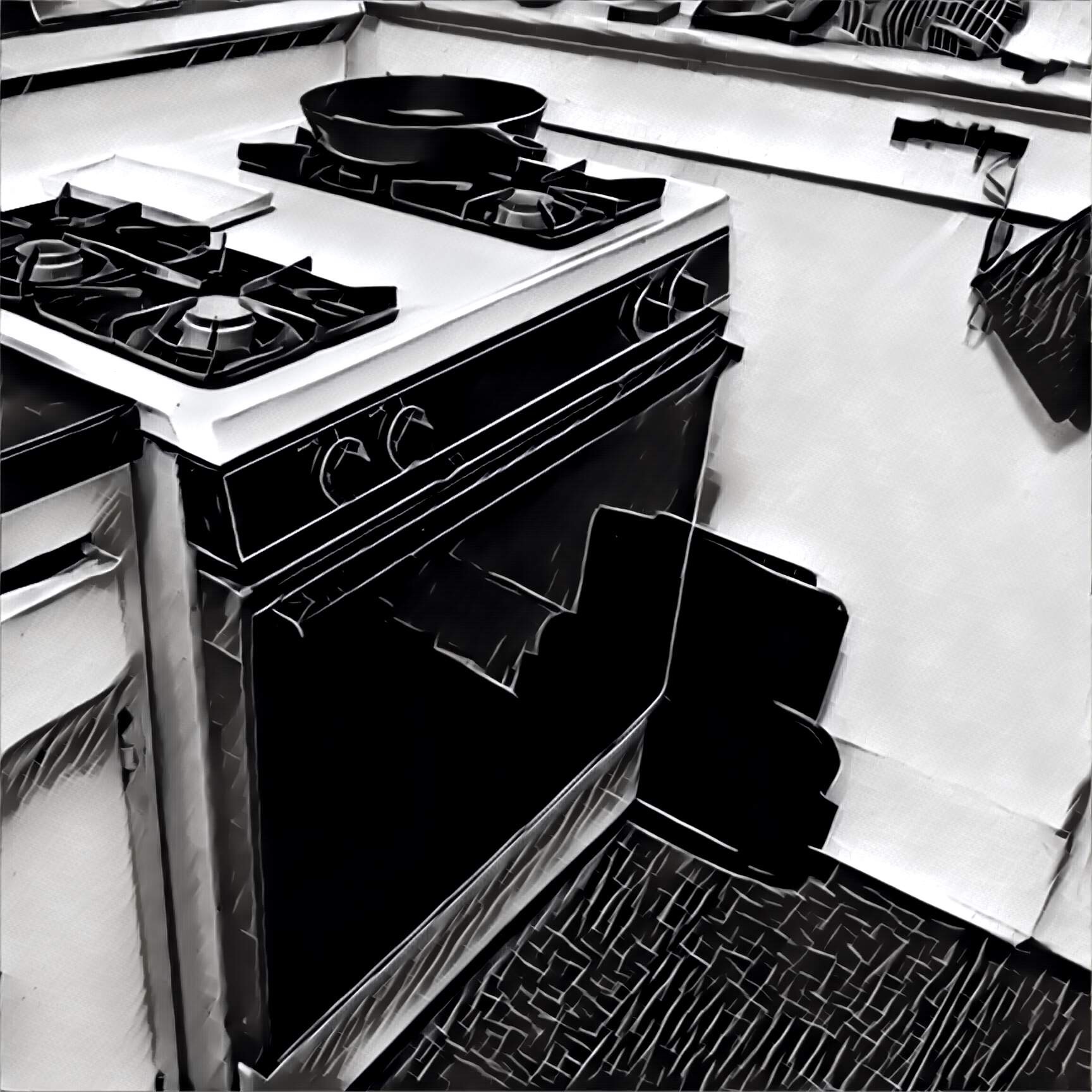 There’s also a box with the pro-style kitchen faucet that I can only describe using a whooshing sound spraying from my mouth accompanied by me waving my hand around simulating a hose clearing the coffee grounds down the drain.